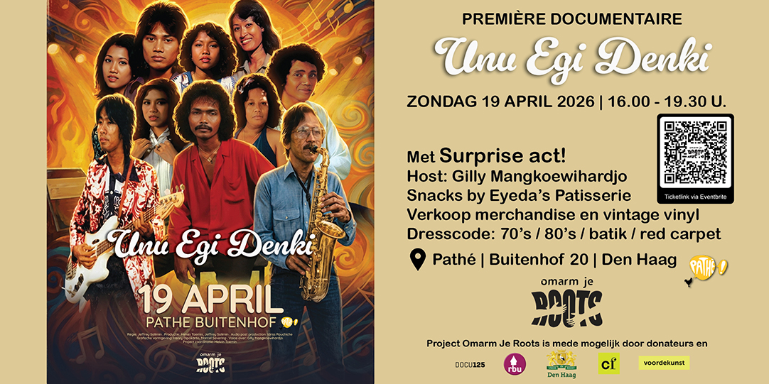 Eddy Assan deed bij de oefening ook meteen een oproep om te komen naar de première van Omarm Je Roots; Unu Egi Denki. In deze documentaire krijg je de verhalen van de Pop Jawa sterren van het eerste uur, zoals Oesje Soekatma, Ragmad Amatstam en Marlene Maridjan te zien. De documentaire op initiatief van Rukun Budi Utama is een ode aan de Surinaamse iconen van de Pop Jawa muziek uit de jaren '70 - '80.